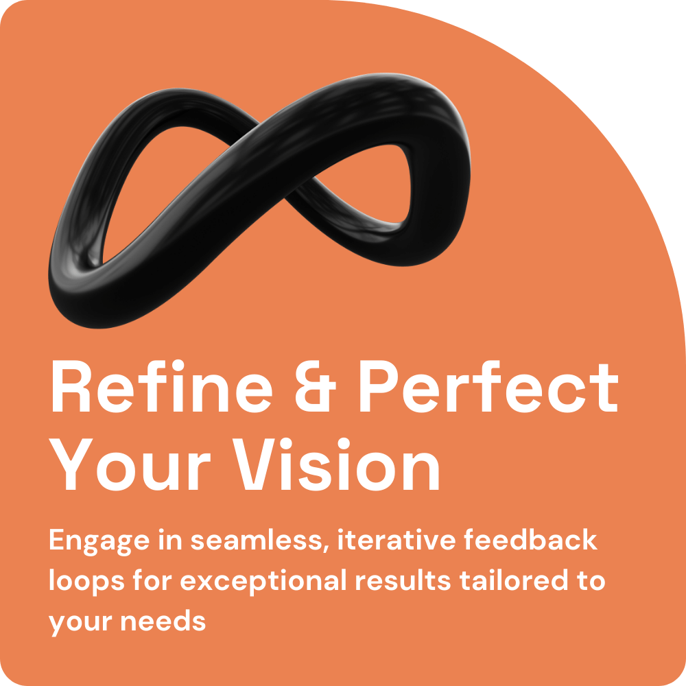 Throughout the project, we implement iterative feedback loops to ensure your ideas are accurately captured and refined. This collaborative approach allows for continuous input and adjustments, ensuring the final product perfectly aligns with your vision.