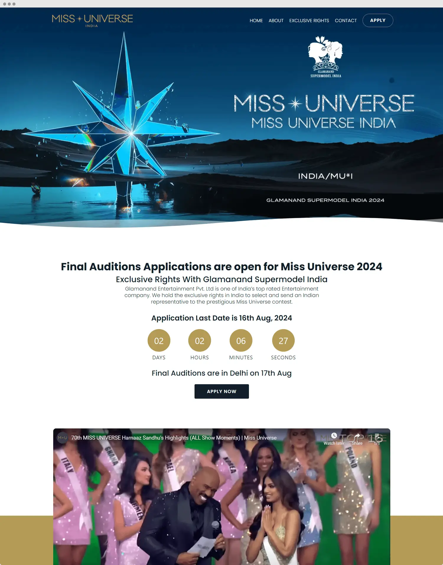 For Glamanand Entertainment, who are responsible for selecting India's representative for the prestigious Miss Universe pageant, we designed a sleek and effective landing page and streamlined the application process.